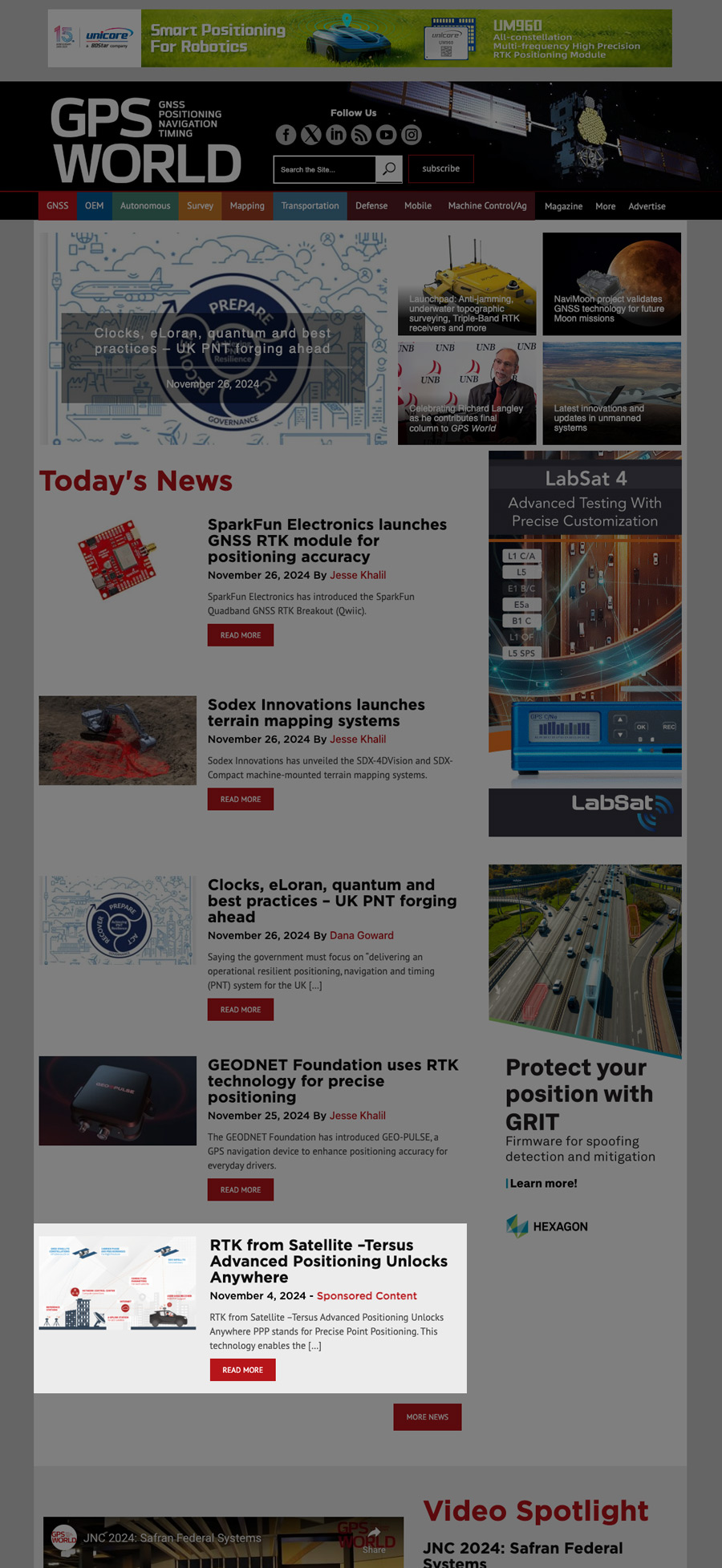 Sponsored content on GPSWorld.com combines the written word with multimedia tools used to inform and engage the audience. Whether the content is written by you or by us, we will utilize different distribution tools and drivers to ensure the correct audience is viewing your materials.